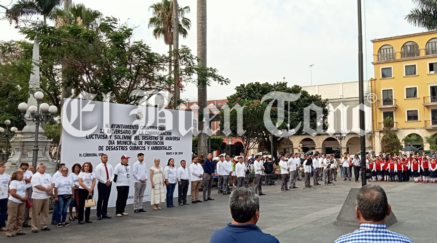 Córdoba, Ver.- Autoridades municipales y la Asociación de Asistencia a los Afectados por Anaversa realizan el acto cívico por el desastre de hace 33 años. Hoy en Córdoba se conmemora el “Día Municipal de Prevención de Desastres Químicos y Ambientales “