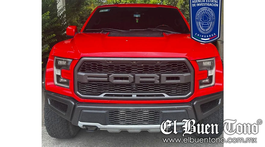 Hidalgo del Parral.- Elementos de la Agencia Estatal de Investigación (AEI) de la Fiscalía de Distrito Zona Sur localizaron y recuperaron una camioneta Ford F150 Raptor, modelo 2018, de color rojo, que contaba con reporte de robo.