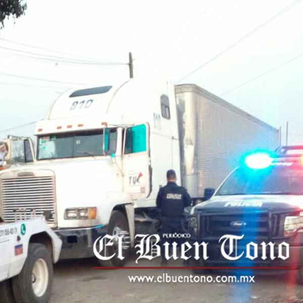 El robo del tractocamión fue reportado alrededor de las 03:00 horas, al servicio de Emergencias 911, en donde mencionaban que el tráiler marca Freightliner, color blanco, placas de circulación 553AR3 y caja seca con número económico 810, cargada con productos de una empresa de galletas, estaba en el paradero de Rancho Trejo.
