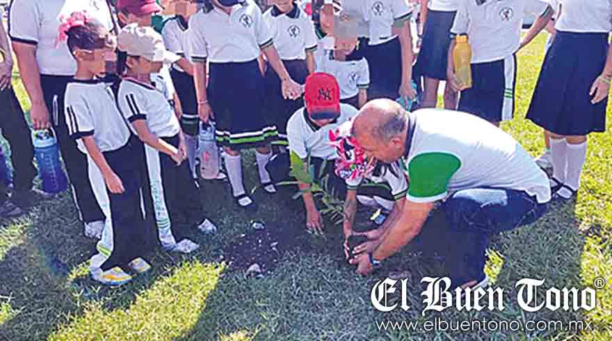 El alcalde Fernando Nicolás Gordillo Torres, integrantes del cabildo municipal, los coordinadores de Ecología y Educación, alumnos del preescolar y primaria del Colegio Francisco Gabilondo Soler Cri Cri, de cabecera municipal, sembraron 15 árboles de pimienta, roble y lluvia de oro, en el parque del municipio de Yanga.