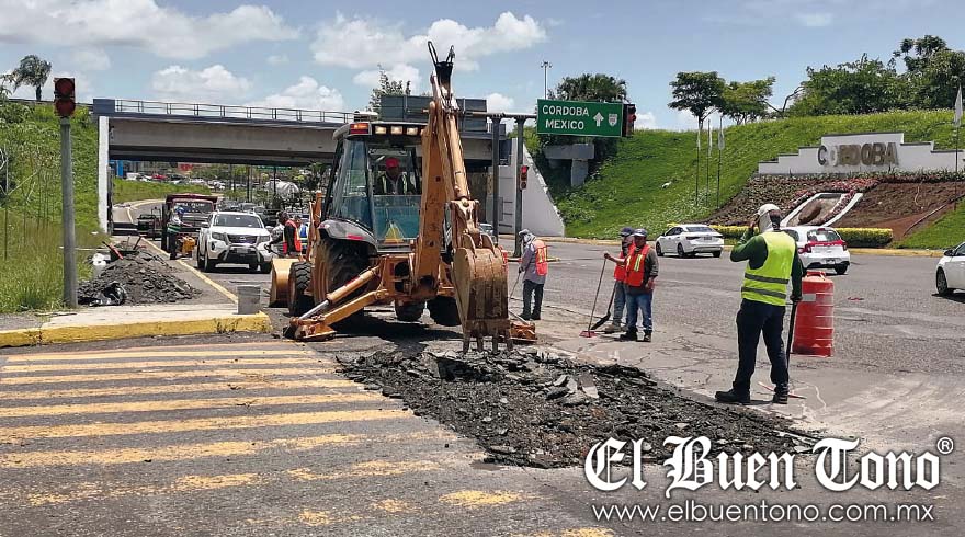 Córdoba.- Una vez que las lluvias cesaron, el Ayuntamiento de Córdoba tomó la iniciativa de rehabilitar la carpeta asfáltica en el bulevar Tratados de Córdoba, a la altura del distribuidor vial “El Diamante”.