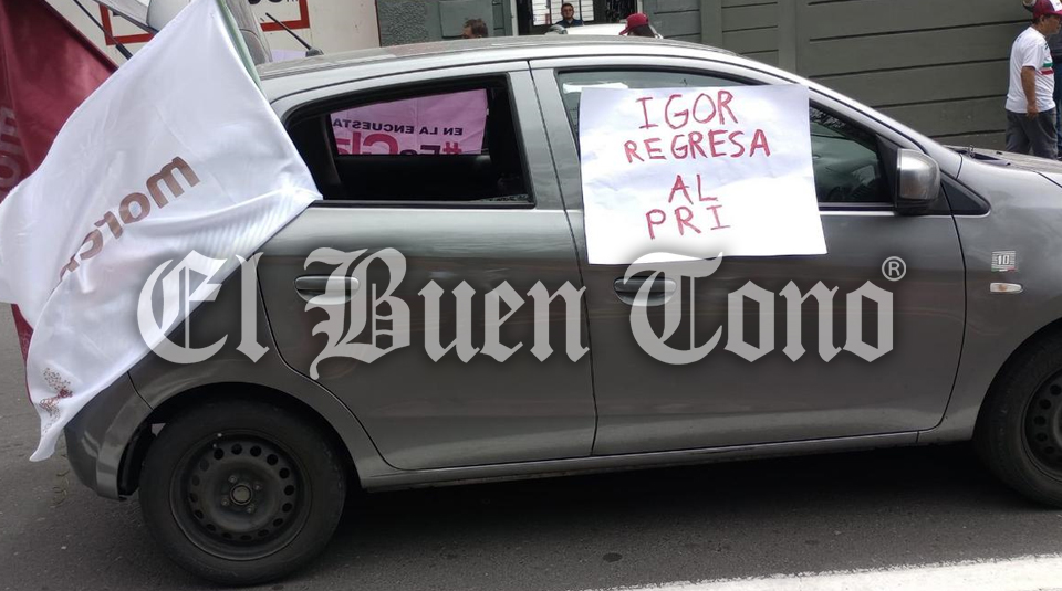 Durante la marcha que realizaron en la ciudad, los “morenos” mandaron al ex priista de regreso a su partido, dejando en claro que no es una opción para abanderar el partido