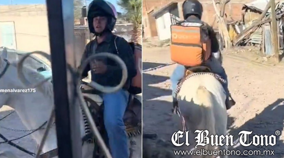 Nacional.- En las últimas horas, un repartidor de la empresa DiDi ha capturado la atención en redes sociales al realizar sus entregas de pedidos montado en un caballo. El video del joven, con mochila distintiva de la marca, ha generado gran impacto en plataformas como TikTok, Facebook y X.