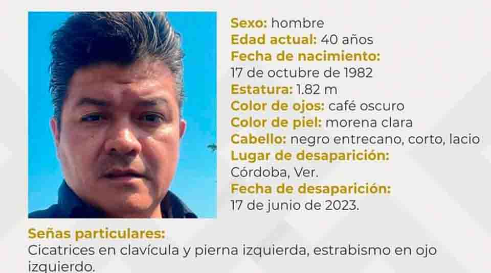 Córdoba, Ver.- Un hombre de 40 años de edad, identificado como Javier Martínez Groyan, se encuentra como desaparecido desde el día 17 de junio.