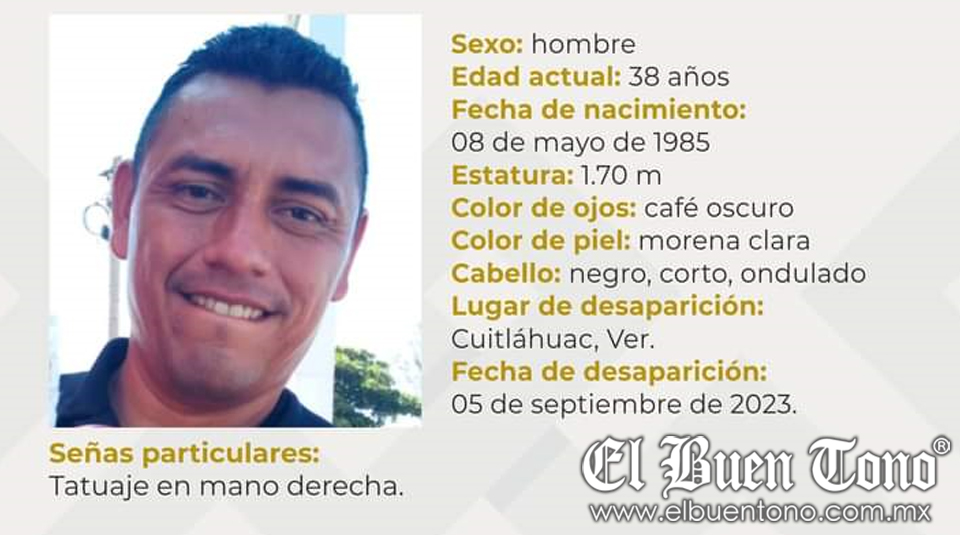 Cuitláhuac, Ver.- Un individuo identificado como Josué Gerónimo Reyes de 38 años de edad, se encuentra como desaparecido desde el pasado 5 del presente mes.