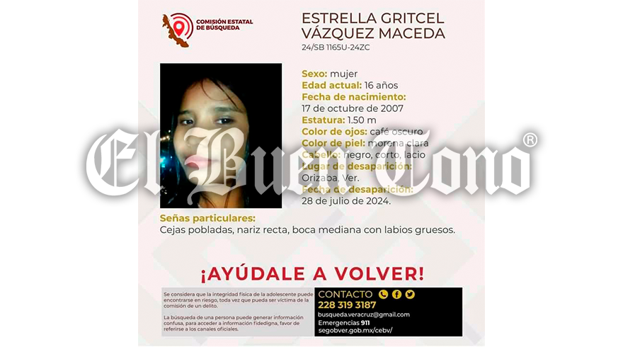 Se trataba de la jovencita Estrella Gritcel Vázquez Maceda, por lo que sus familiares piden el apoyo de la sociedad para que faciliten cualquier información que lleve a dar con el sitio donde pueda estar la adolescente.