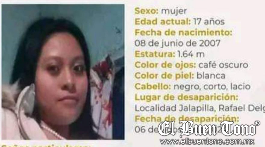 Rafael Delgado, Ver.- Una joven de 17 años, avecindada en Jalapilla, municipio de Rafael Delgado fue reportada como desaparecida por sus familiares, quienes dieron a conocer que no saben de ella, desde el pasado martes 6 de agosto.