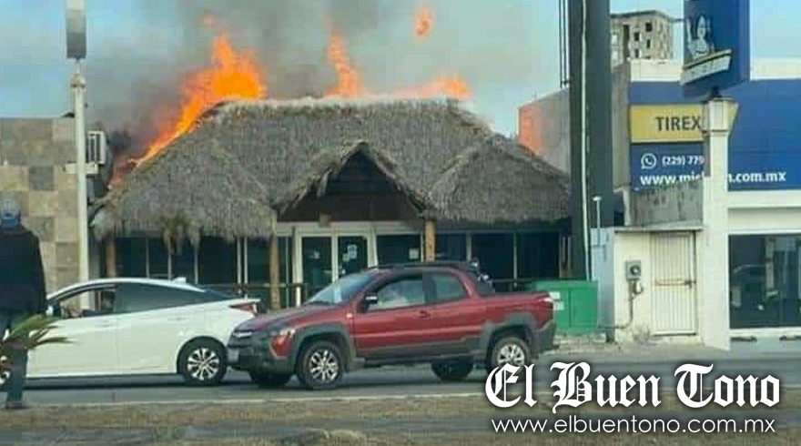 El restaurante se ubica sobre el bulevar Adolfo Ruíz Cortines.En el lugar de los hechos se encuentran bomberos de Boca del Ríos mientras intentan sofocar el fuego.