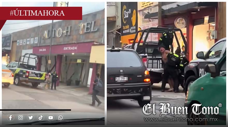 En las imágenes se aprecia cómo patrullas de la Policía Municipal ingresan al establecimiento y sacan a un hombre sin camiseta que gritaba por ayuda al momento de ser asegurado. Minutos después, una mujer también fue detenida por los elementos.