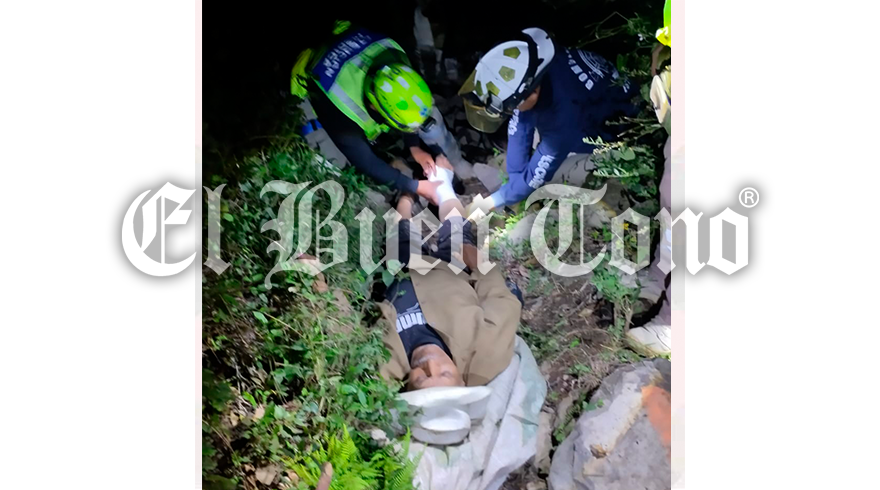 Coscomatepec.- Con una fractura en el pie derecho, resultó un campesino que cayó un barranco en la colonia Vázquez Vela la noche del miércoles. Bomberos Regionales y Protección Civil, lo rescataron con vida.