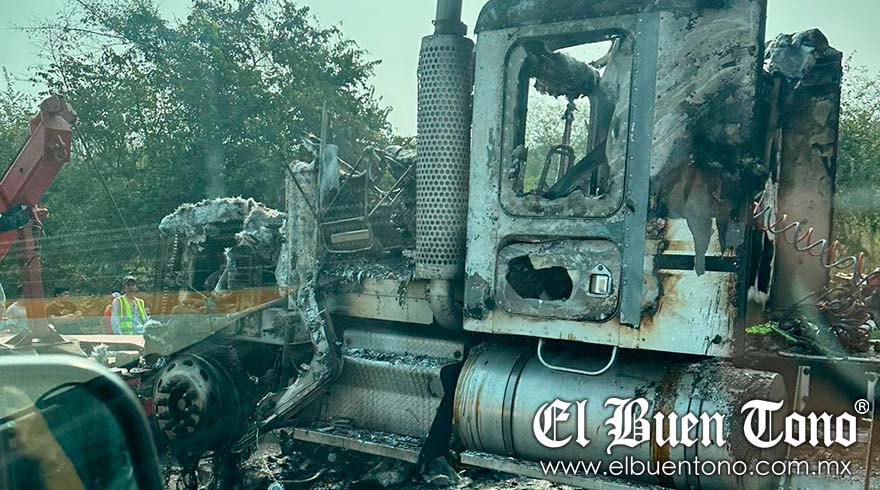 La Tinaja.- A punto de morir calcinado estuvo el conductor de un tractocamión con caja seca, cargada de cartones de cerveza, cuando la unidad se incendió la mañana de ayer viernes en la autopista Córdoba-Veracruz, en el kilómetro 51.