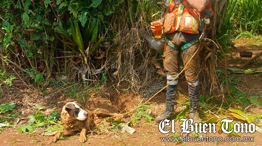 Fortín.- Bomberos Voluntarios Veracruzanos de Fortín y miembros del grupo Águilas Negras rescataron con vida a un perrito que cayó en un pozo artesiano de aproximadamente 10 metros de profundidad en la localidad de Monte Salas.