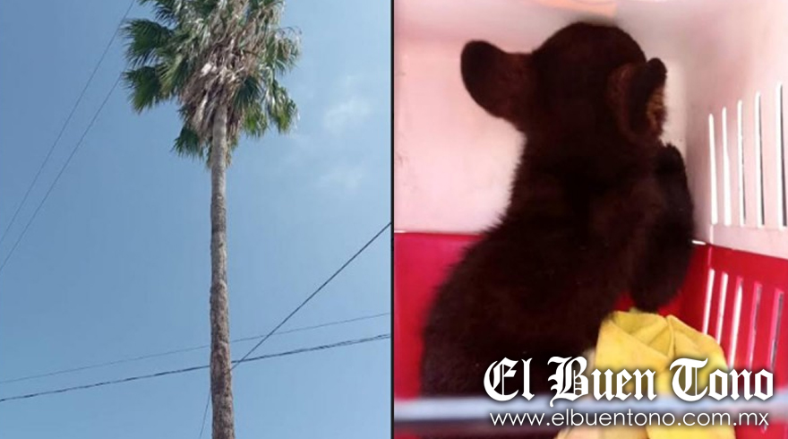 N. León.- Se dio a conocer que elementos de Protección Civil de Nuevo León lograron el rescate de un osezno, el cual se encontraba en lo alto de una palmera en Apodaca.