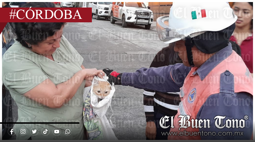 Córdoba.- Bomberos de la ciudad de Córdoba y personal de Protección Civil rescataron un gato, que se encontraba atrapado en un pino de unos 18 metros de altura.
