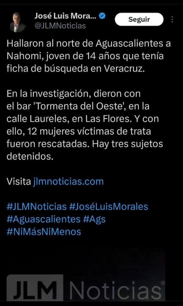 Aguascalientes, Ags.– Durante un operativo realizado en un bar del norte de la ciudad de Aguascalientes, autoridades rescataron a 13 mujeres presuntamente víctimas de explotación, entre ellas una menor de aproximadamente 14 años, quien podría estar relacionada con una ficha de búsqueda emitida en el estado de Veracruz.