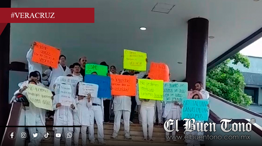 Veracruz, Ver.– La mañana de este jueves, médicos residentes del Hospital Regional de Veracruz realizaron una manifestación pacífica en las inmediaciones del nosocomio para denunciar la carencia de insumos básicos que, aseguran, afecta directamente la atención de los pacientes.