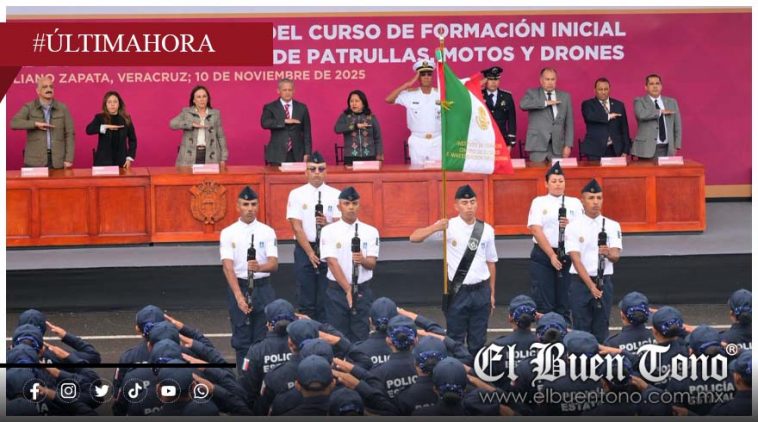 Xalapa, Ver., 10 de noviembre de 2025.- En representación de la LXVII Legislatura del Estado de Veracruz, la presidenta de la Mesa Directiva, diputada Naomi Edith Gómez Santos, acudió a la Ceremonia de Graduación y Jura de Bandera del Curso de Formación Inicial para Policía de Proximidad Estatal y Entrega de Patrullas, Motos y Drones, encabezada por la gobernadora de Veracruz, Rocío Nahle García. La inversión, que supera los 200 millones de pesos, fortalece las capacidades operativas de la fuerza policial e impulsa la Estrategia Estatal de Seguridad para mantener la paz en Veracruz.