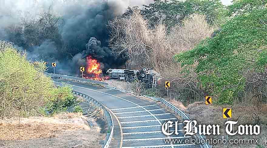 El percance se registró a la altura del kilómetro 0, cuando el conductor del tractocamión, de la empresa British, perdió el control de la pesada unidad, presumiblemente tras quedarse dormido, por lo que se impactó contra el cerro, provocando que se incendiara.