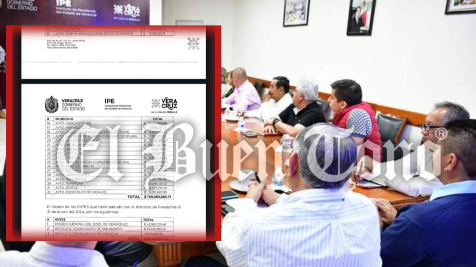 Un total de 259,839,825 pesos es el adeudo total que mantienen diversos entes públicos con el Instituto de Pensiones del Estado de Veracruz, entre los que destacan diversos ayuntamientos.