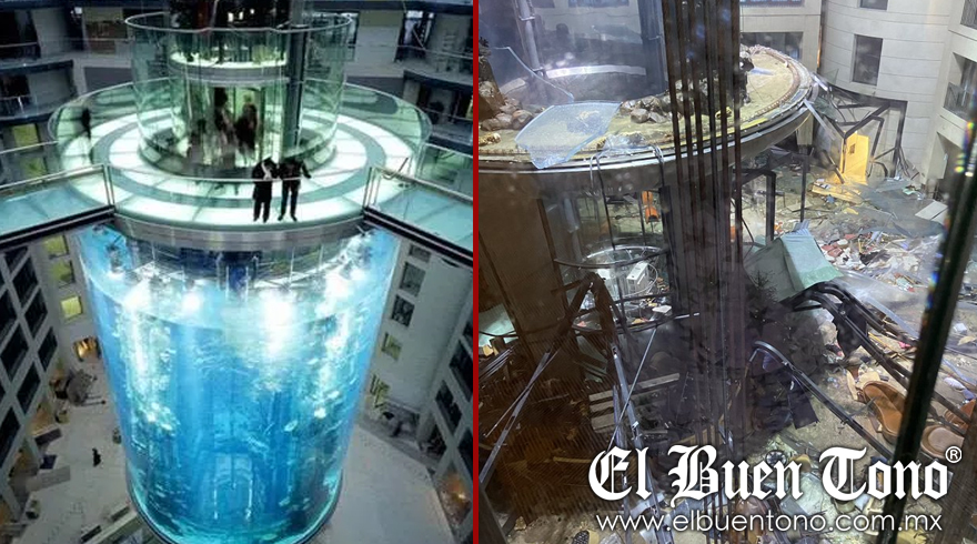 Alemania.- Al menos dos personas resultaron heridas hoy viernes en el centro de Berlín al reventar esta madrugada el acuario AquaDom, uno de los más grandes del mundo, con un millón de litros de agua de capacidad, en el interior del lujoso hotel Radisson Blu, donde estaba instalado.