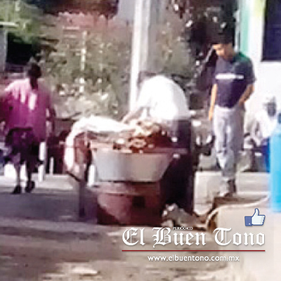 A plena luz del día, y en el primer cuadro de la ciudad, se pueden ver negocios que ofrecen sus productos con falta de higiene, y no conforme con eso, ponen en riesgo la salud y la seguridad de la gente que transita por el área, así como a sus consumidores.
