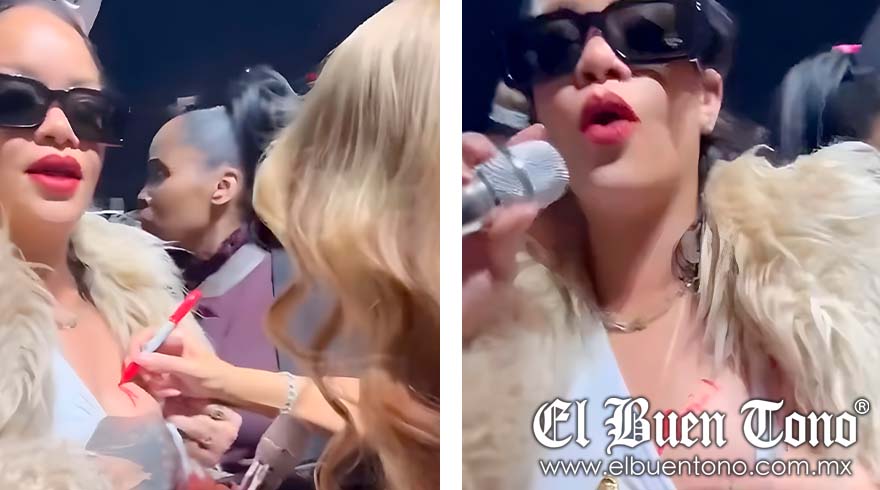 Mientras la intérprete de “All I Want for Christmas Is You” cantaba, Rihanna comentó en tono de broma: “¿Debería pedirle que me firme la camiseta o el pecho?” Poco después, Mariah notó su presencia, se acercó a ella y, con un marcador permanente en mano, se dispuso a firmar el pecho izquierdo de Rihanna.