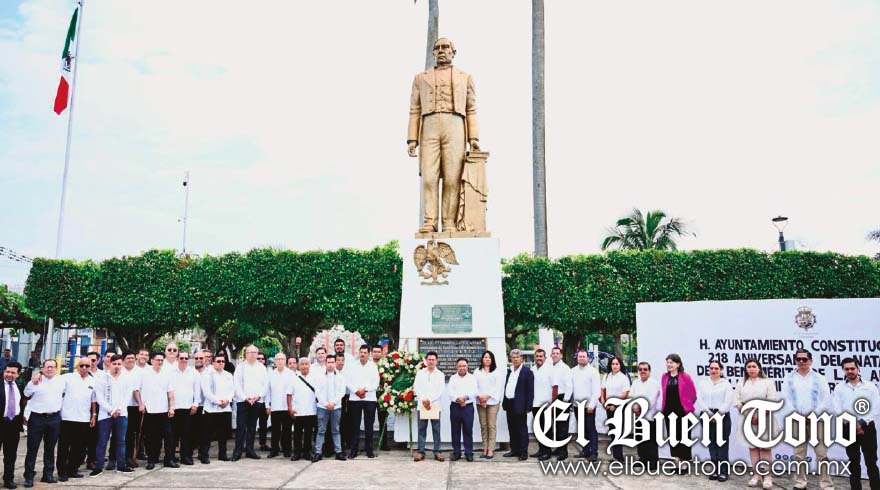 CÓRDOBA.- Al conmemorarse el 218 Aniversario del Natalicio de Benito Juárez García, ex presidente de México, precursor de las Leyes de Reforma que dieron a México una nueva vida jurídica, las autoridades municipales de Córdoba acompañadas de distintas logias masónicas, rindieron homenaje en la explanada del parque 21 de Mayo y se izó la Bandera Nacional a toda asta.