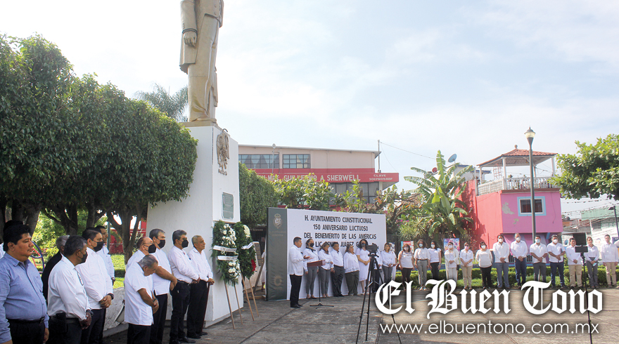 Córdoba.- Autoridades de este municipio llevaron a cabo un acto cívico para conmemorar el 150 Aniversario Luctuoso del Benemérito de las Américas, Benito Juárez. Encabezado por el presidente municipal Juan Martínez Flores y en presencia del cuerpo edilicio, la Bandera fue izada a media asta en señal de luto, por la regidora segunda Isamar Balderas Flores.
