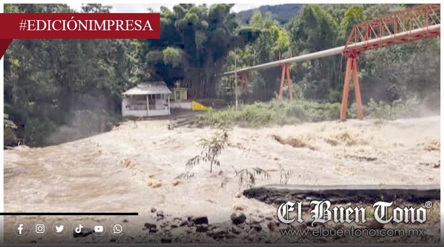 Omealca.- Un incremento en el nivel del río Blanco provocó que se desbordara a la altura de Xúchiles, lo que causó la interrupción del tránsito vehicular en la carretera que comunica a este municipio y Cuichapa.