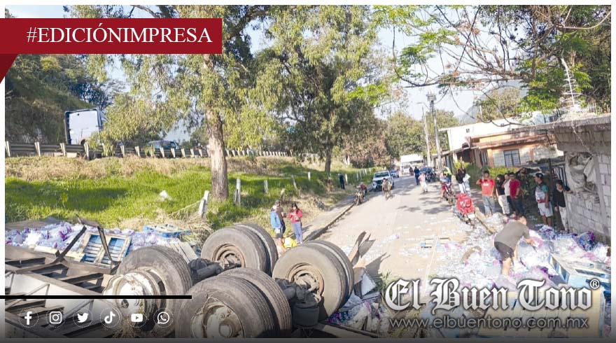 NOGALES.- Un accidente de tráfico en una importante carretera de la región derivó en el robo de la carga de un camión que transportaba agua embotellada.