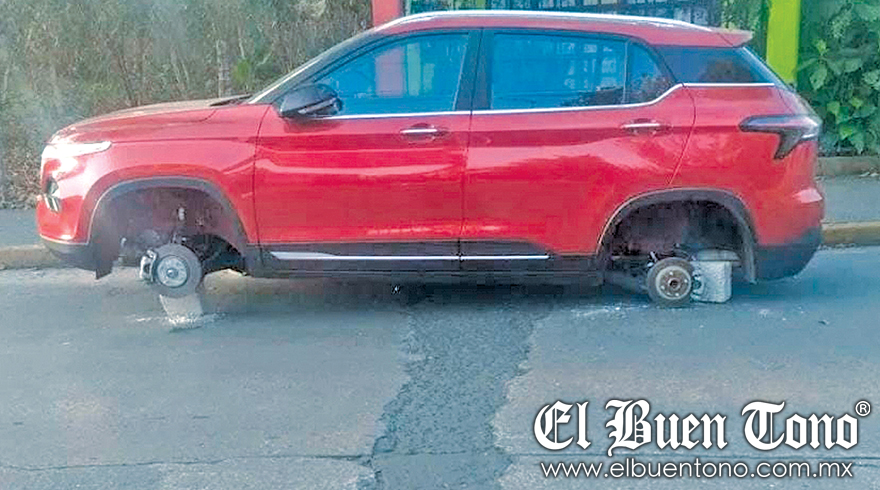 Explicó que alrededor de las 04:00 horas, escuchó ruidos extraños afuera de su casa asentada a la altura de la calle Norte 5 por lo que decidió salir a ver lo que sucedía. Fue entonces cuando descubrió que su camioneta ya no tenía las llantas y estaba sobre cuatro blocks alcanzando a ver que los “ratas” habrían huido a bordo de un vehículo blanco.