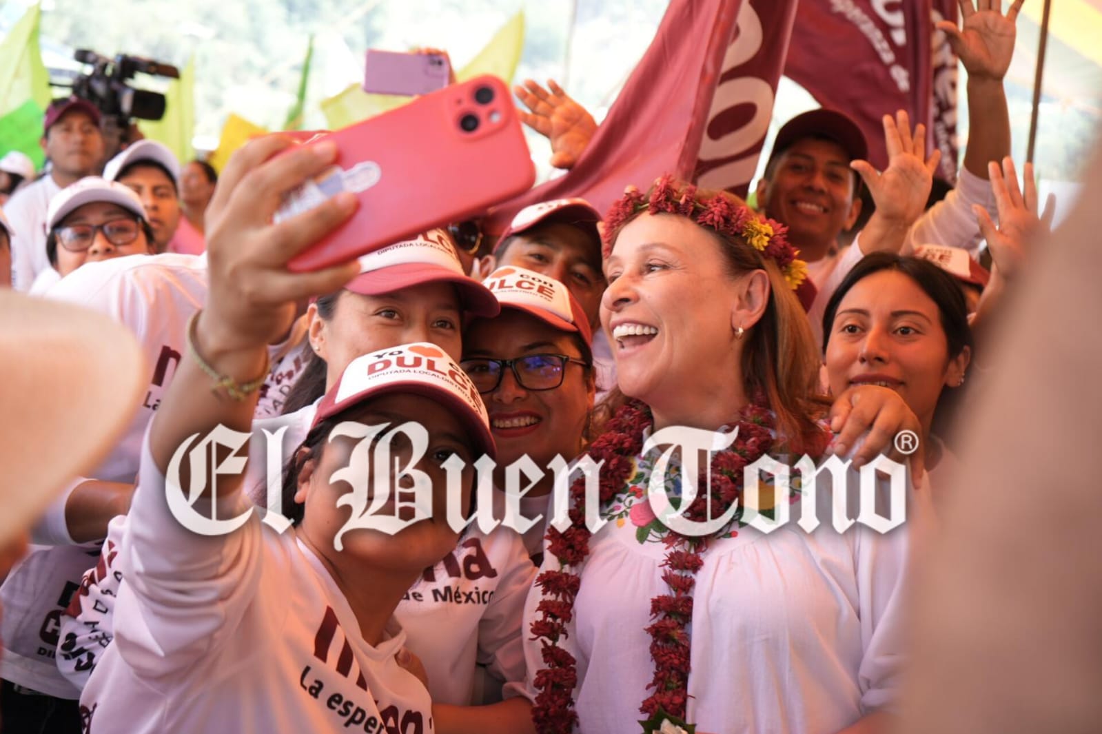 Rocío Nahle llevó a cabo un mitin alegre donde continuó presentando las propuestas de trabajo que impactarán directamente en beneficio al campo, salud, educación y empleo en el municipio de Los Reyes en la zona de las Altas Montañas.