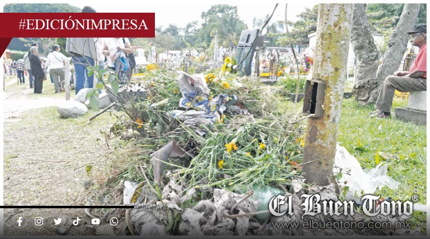 Fortín.- En ocasión del Día de Muerto, las familias que acudieron a los panteones municipales para honrar la memoria de sus seres queridos se encontraron con montículos de basura acumulada, cables de energía eléctrica tendidos sobre los caminos y un comercio irregular que se adueñó de las entradas.