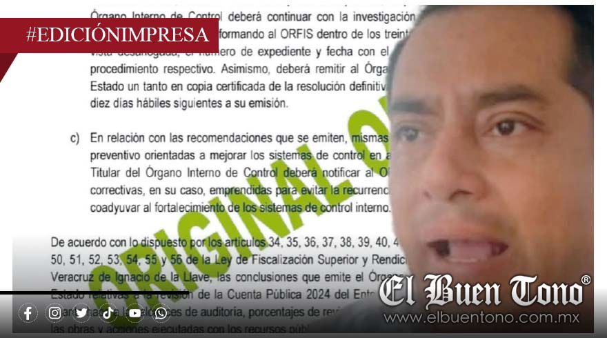 Fortín.- A pesar de que las autoridades que preside, Gerardo Rosales Victoria, intentaron ocultar la información, el Órgano de Fiscalización Superior del Estado (Orfis), confirmó que incurrieron en daño patrimonial por 7.7 millones de pesos de la Cuenta Pública individual 2024, tal y como lo publicó El Buen Tono.