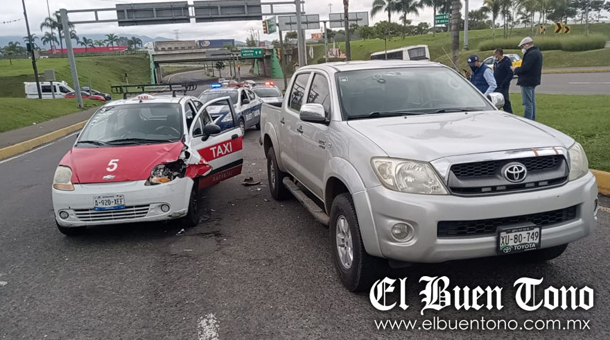 CÓRDOBA.- El conductor del taxi marcado con el número 5 del municipio de Naranjal, provocó un accidente al chocar por alcance contra una camioneta, debido a que no guardó una distancia prudente de circulación, cuando ambas unidades circulaban sobre el bulevar Tratados de Córdoba, a la altura del distribuidor vial El Diamante, lo cual ocasionó solamente la movilización de autoridades de Tránsito Municipal.