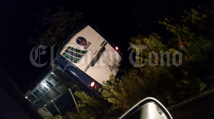 Puente Nacional, Ver.- Un autobús de la línea Azules de Huatusco, con número 14, fue sacado de la carretera federal Huatusco-Conejos a la altura de Remudadero, durante la noche de este viernes.
