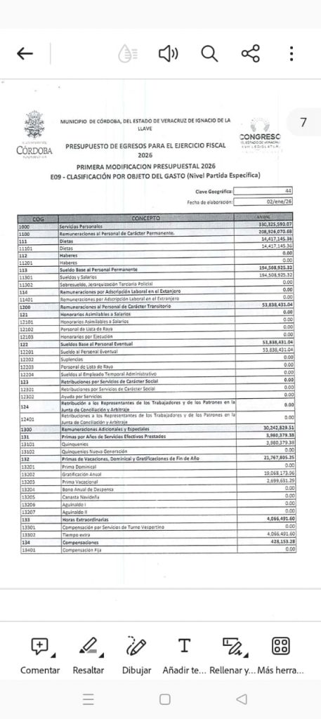 A dos meses de haber arrancado el gobierno de Manuel Alonso Cerezo, los ciudadanos de Córdoba no tienen un presupuesto claro. Lo que hay es un proyecto de agosto con salarios millonarios para ediles, una modificación de enero que no aclara si esos salarios se mantienen, una Tesorería que entrega documentos con errores y una partida de 53.8 millones para personal eventual que es un comodín sin rendición de cuentas.