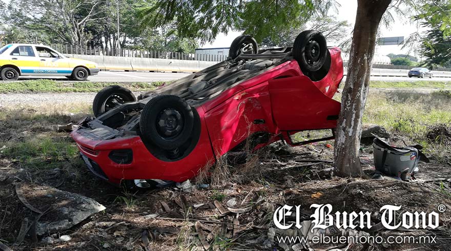 Córdoba.- Un hombre originario de Guanajuato salió ileso después de volcar su automóvil, que terminó estrellándose contra un árbol a un costado de la autopista Córdoba-Veracruz.