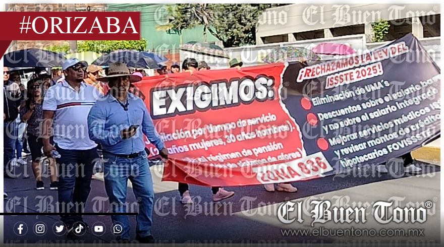 Orizaba.- Docentes de las regiones de Orizaba, Córdoba y Zongolica iniciaron este día una marcha pacífica para manifestar su rechazo a la reforma de la Ley del Instituto de Seguridad y Servicios Sociales de los Trabajadores del Estado (ISSSTE), propuesta por el gobierno federal.