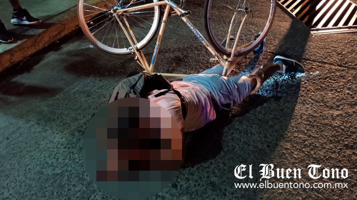 El hecho ocurrió, al filo de las 22:00 horas de ayer, cuando un hombre de aproximadamente 40 años, se desplazaba rumbo a su domicilio a bordo de una bicicleta de carreras marca Benotto de color blanco, presuntamente en completo estado de ebriedad. Al llegar al cruce de la Poniente 41, entre Norte 8 y 10, lo delgado de la llanta delantera hizo que al pasar un traga tormentas la bici se atorara y saliera “volando” por los aires un par de metros, hasta que finalmente acabó tirado sobre el pavimento junto a su bicicleta. Como resultado, el hombre se hizo una herida abierta en la frente que le generó abundante sangrado, por lo que tras lo sucedido vecinos del lugar solicitaron el apoyo de PC, cuyo personal le brindó atención y lo canalizó a un hospital, para que suturaran su herida.