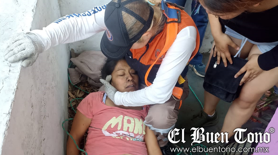 Con el uso de cuerdas, cascos y arneses, los miembros de Protección Civil descendieron al barranco y lograron rescatar a la mujer, quien resultó herida a consecuencia de los golpes.