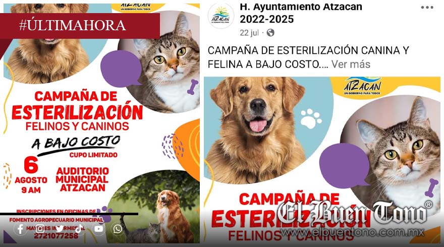 Orizaba.- El Ayuntamiento de Santa Ana Atzacan, en coordinación con la Jurisdicción Sanitaria No. 7, promueve una Campaña de Esterilización Canina y Felina a bajo costo para el próximo 6 de agosto, en el Auditorio Municipal. Sin embargo, la iniciativa ha generado críticas entre rescatistas y defensores de los animales, quienes señalan que el cobro por este servicio contradice la obligación legal del municipio de garantizar el control animal y prevenir el abandono.