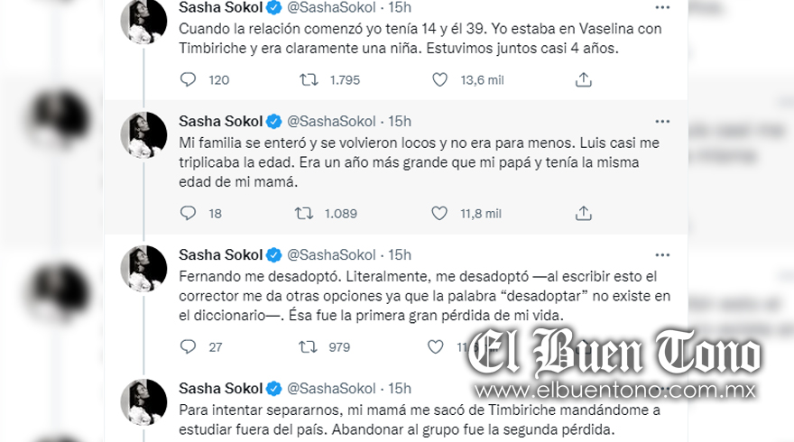 Para finalizar Sasha espera que su experiencia y su decisión de romper el silencio, sirva para que otras mujeres alcen la voz, si es que están viviendo abuso, eso sí dejó en claro que no piensa volver a tocar el punto y cerró con la frase “Luis de Ya No”.