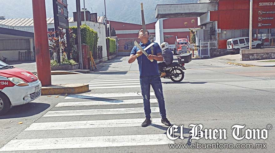 Río Blanco.- Por lo menos desde hace unos 10 años, Saúl Aguilar, originario de Ojo Zarco, Nogales, se dedica al malabarismo callejero para sobrevivir.