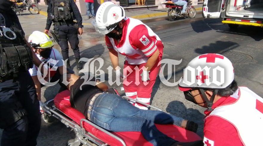 El herido tuvo que ser atendido por paramédicos de la Cruz Roja y trasladado a un hospital para atención médica, mientras que al lugar arribaron autoridades de Tránsito Municipal para tomar conocimiento.