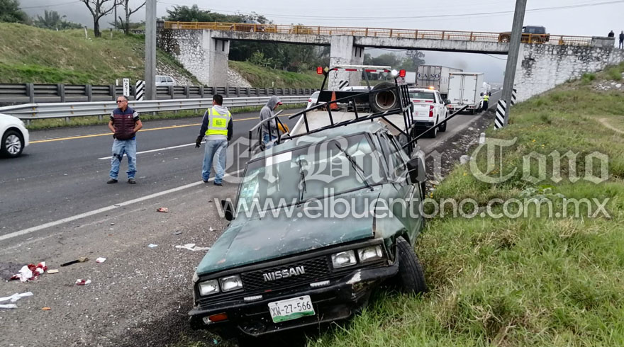 Huiloapan.- Integrantes de un equipo de futbol amateur, sufrieron un aparatoso accidente que se registró la tarde de este lunes en el kilómetro 271 de la autopista Puebla-Córdoba, luego de que la camioneta en la que viajaban fue embestida por un camión de carga.