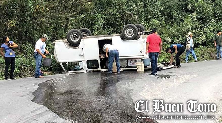 Zongolica.- Momentos de pánico y angustia vivió una familia, luego de que la “combi” en la que viajaban sobre la carretera estatal Zongolica-Texhuacan, sufrió una falla mecánica y acabó volcada, “llantas arriba”.