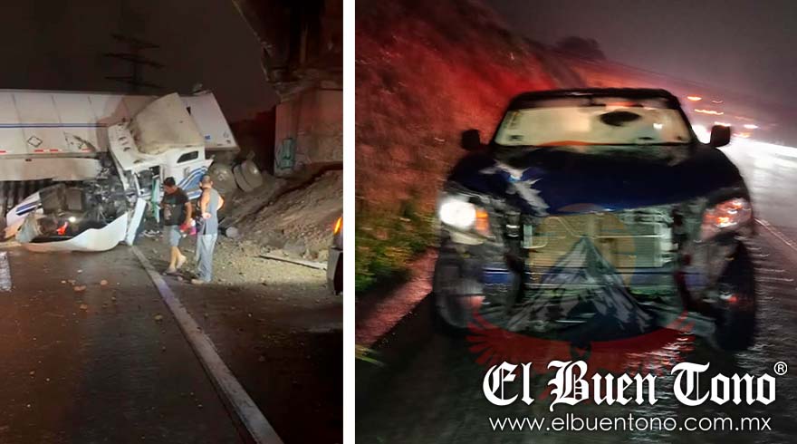 ORIZABA.- Un tráiler tipo caja se volcó y quedó atravesado bloqueando ambos carriles, mientras que un automóvil resultó seriamente dañado al chocar contra un alud anoche en la autopista Orizaba-Córdoba, dejando sólo daños materiales y la movilización de personal de los diferentes grupos de auxilio.