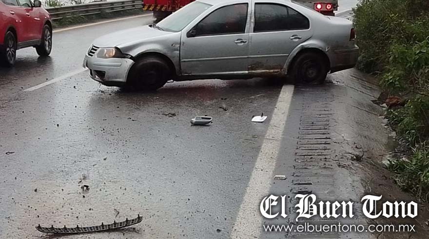 Un accidente vial se registró la tarde del pasado viernes, en el kilómetro 256 de la autopista Puebla-Córdoba, luego de que un Jetta de color gris, con placas de circulación de Puebla, en el que viajaba una familia derrapó y chocó contra la barra de contención que está sobre la lateral. Afortunadamente, ninguna de las personas que viajaba en el auto resultó lesionada, por lo que paramédicos de Capufe abanderaron la circulación en dicho tramo carretero, para evitar que pudiera registrarse algún otro percance.