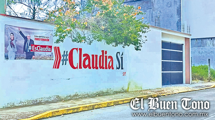 La propaganda no únicamente se pueden apreciar en las lonas, ya también es visible la presencia de bardas con el #Claudia Sí, donde su nombre está en un color muy similar al vino y la palabra “Sí” en negro.